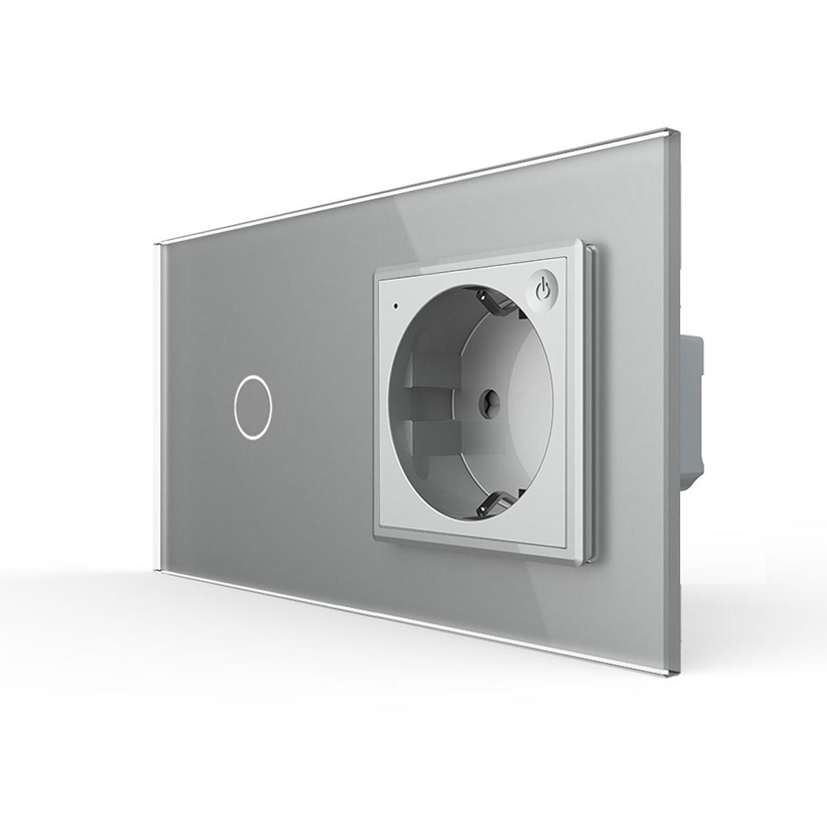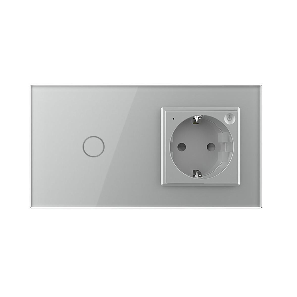 Livolo EC Wechselschalter- und Steckdosen-Modul mit zweifachem Glasrahmen in Weiß