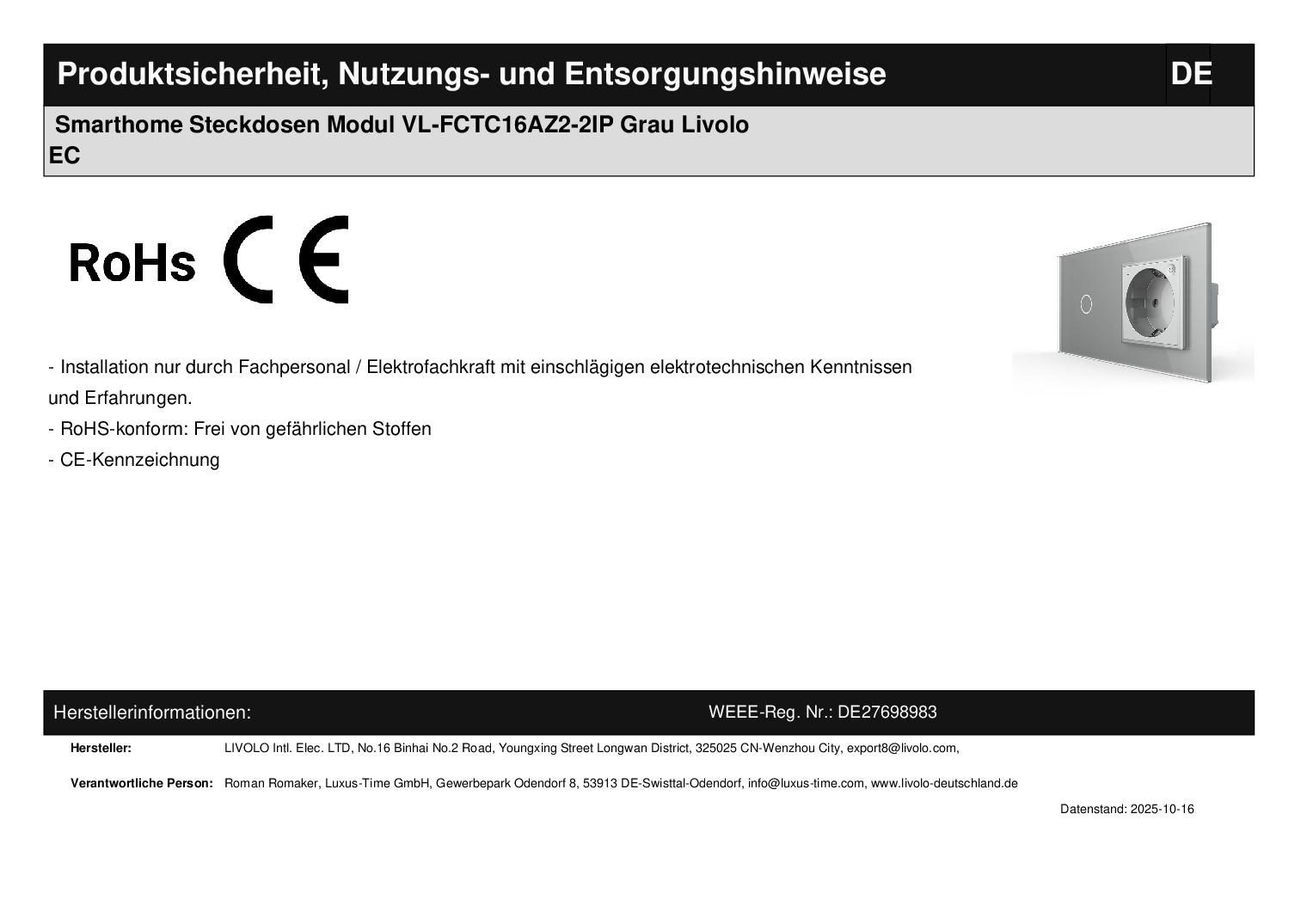 Herstellerangaben:LIVOLO INTERNATIONAL ELECTRIC LTD
