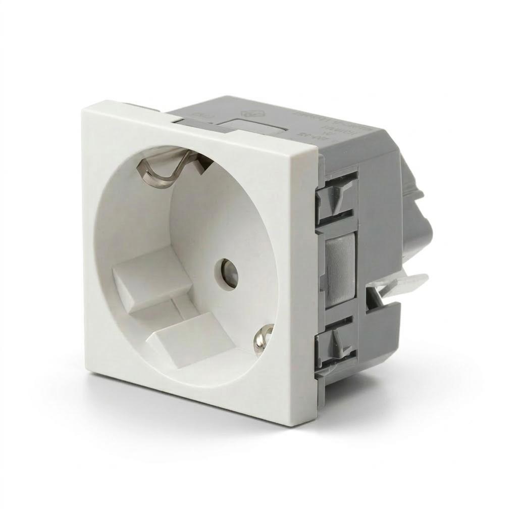 Livolo einfaches Steckdosen-Modul VDE 45° in Weiß Dies ist ein einfaches Livolo Steckdosen-Modul in Weiß mit Steckklemmen, VDE zertifiziert. Dieses Modul ist um 45° gewinkelt (auch die Anschlüsse auf der Rückseite), um mehr Platz für Kabel und Stecker zu gewährleisten. Passend zu unseren Bodentanks (sofern in der Artikelbeschreibung nicht anders erwähnt). Die Steckdosen-Module sind für Bodentanks mit einer Öffnung im Gerätebecher von 45 x 45 mm geeignet . Bei uns erhalten Sie die komplette Livolo Bandbreite; von einem einfachen Wipp-Lichtschalter bis zum smarthome-fähigen Touch-Rollladenschalter. Fragen? Rufen Sie uns an oder senden Sie uns eine E-Mail. Wir beraten Sie gerne! Technische Daten: 16A, 250V Kabelinstallation über die Installationsklemmen nach VDE Norm Abmessungen:45 x 45 x 43 mm Lieferumfang: Im Lieferumfang enthalten ist: - 1 x Livolo Innenleben Steckdose VDE, gemäß Bestellung Herstellerangaben:Legrand GmbH