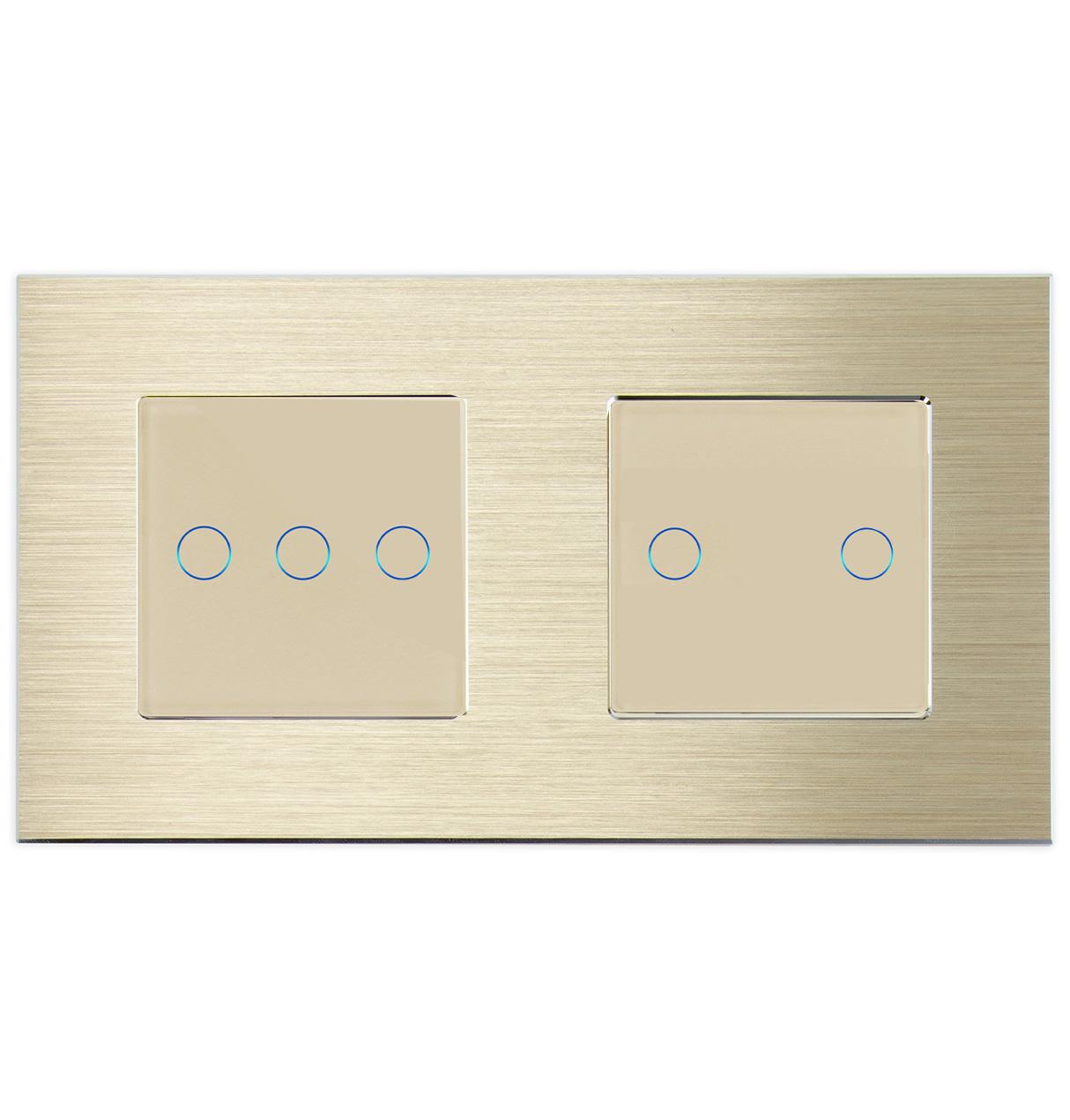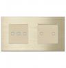 Dieser Artikel besteht aus einem goldenen, zweifachen Aluminiumrahmen, sowie einem goldenen Dimmer-Modul und einem goldenen Seriendimmer-Modul.