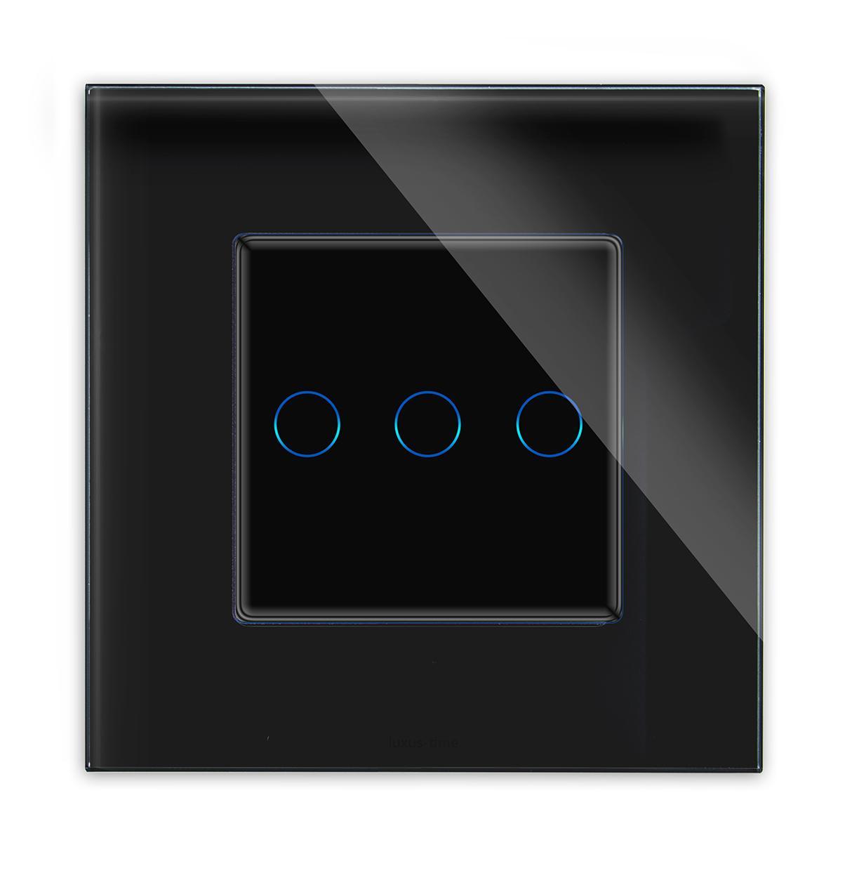 POINT einfaches Touch-Dimmer-Modul mit einfachem Glasrahmen in SchwarzDer einfache Lichtschalter ist zum ein- und ausschalten einer Leuchte bzw. einer Lichtgruppe, sowie dem dimmen geeignet.Einfache und schnelle Montage, sowohl vertikal als auch horizontal . Alle Touch-Schalter sind beleuchtet . Wenn die angeschlossene Leuchte ausgeschaltet ist, leuchtet der Schalter schwach blau, wenn die Leuchte eingeschaltet ist, leuchtet der Schalter in einem stärkeren Blau. Die Touch-Schalter sind mit allen Arten von Leuchten verwendbar (Halogen, LED, Energiesparlampen), außer LED-Strips . Bei LED-Strips ist die Watt-Zahl in den meisten Fällen zu gering und kann dadurch zu Problemen führen. Sollten Sie Probleme wie z. B. Flackern von Leuchten bzw. das die Leuchten nach kurzer Zeit von alleine wieder ausschalten, haben, sollten Sie die Watt-Leistung erhöhen. Der Austausch erfolgt wie bei anderen Wipp-Schalter-Herstellern. Ersetzen Sie einfach Ihre alten Wipp-Schalter durch ein neues, langlebiges Design. Die Lichtschalter- und Steckdosen-Module sind für Unterputzdosen mit 60 mm Durchmesser geeignet . Die Module werden mittels der den Glasblenden beiliegenden Metallrahmen durch Schrauben an den Unterputzdosen befestigt. Bei uns erhalten Sie die komplette Point Bandbreite; von einem einfachen Wipp-Lichtschalter bis zum smarthome-fähigen Touch-Rollladenschalter. Hinweis zur Installation: Lichtschalter stromlos anschließen. Glasblende aufsetzen. Wichtig!!! Strom erst einschalten, wenn die Glasblende aufgesetzt wurde. Sollte dieser Hinweis nicht beachtet werden, kann es vorkommen, dass der Lichtschalter nicht reagiert. Fragen? Rufen Sie uns an oder senden Sie uns eine E-Mail. Wir beraten Sie gerne! Technische Daten:Abmessungen: 86 x 86 x 35 mm Betriebsspannung: AC110 ~ 250V, 50Hz60Hz max. Stromzufuhr für jeden Gang 2.5 A max. Leistung für jeden Gang: 700W Ruhestromverbrauch: weniger als 0,1mW Lebensdauer: 100.000 Benutzungen Montage in Standard UP-Dose mit Durchmesser von 60mm mit Schraubgewinde Herstellerangaben:YIWU BINGE ELECTRICAL CO.,LTD.