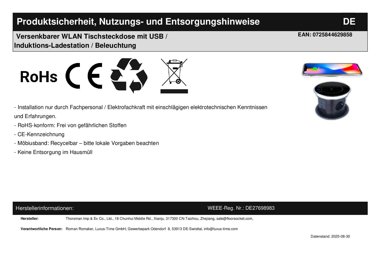 Herstellerangaben:Wenzhou Thorsman Import & Export Co., Ltd.