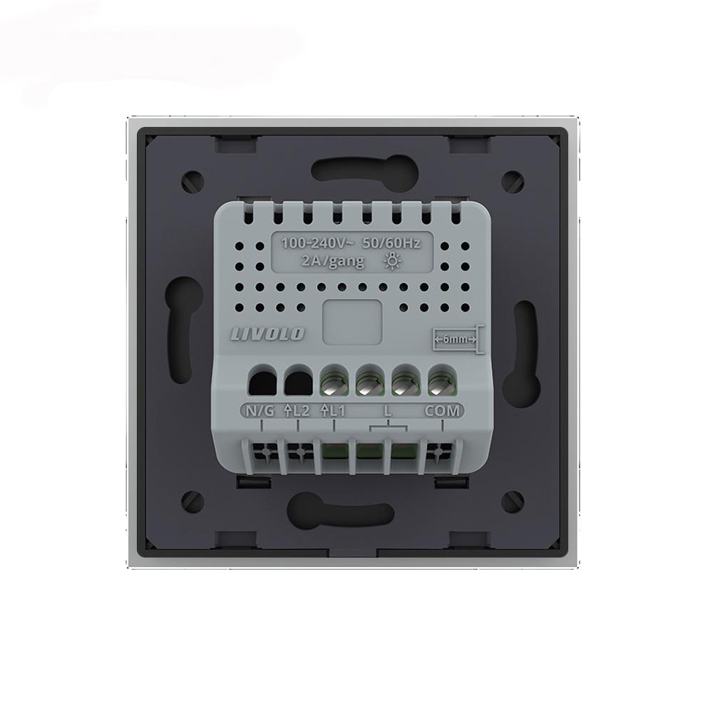 Livolo dimmbarer EC Wechsel-/Kreuzschalter mit Glasblende in GrauDies ist ein dimmbarer Livolo EC Wechselschalter, zum ein- und ausschalten einer Leuchte bzw. Leuchtengruppe, sowie dem Dimmen dieser. Zusätzlich verfügt er über eine Wechselschalt-Funktion, sodass die Leuchte von bis zu vier Schaltern aus ein- und ausgeschaltet werden kann. Die Livolo Touch-Wechselschalter können gleichzeitig auch als Kreuzschalter verwendet werden. Der Anschluss aller korrespondierender Kabel der weiteren Touch-Wechselschalter erfolgt zusammen im COM-Anschluss des Schalters, der als Kreuzschalter verwendet wird. Bitte beachten Sie, dass dieser Wechseldimmer nur in Verbindung mit dem Livolo Touch-Wechselschalter VL-C701S nutzbar ist. Pro Wechselschaltung können Sie nur einen Wechseldimmer nutzen. Da im Anschluss eine Synchronisation ( YouTube-Video ) erfolgen muss, können innerhalb einer Wechselschaltung nur Livolo Touch-Wechselschalter verwendet werden. Die Synchronisationsanleitung finden Sie in der Bedienungsanleitung. Zusätzlich kann dieser Schalter in Verbindung mit dem Livolo EC Gateway auch per App gesteuert werden. Durch die Glasblende wird dieser Schalter mit moderner Sensortechnik zu einem echten Hingucker. Einfache und schnelle Montage, sowohl vertikal als auch horizontal . Kurzes Berühren des Touchfelds schaltet die Leuchte ein oder aus. Ein längeres Gedrückt halten des Touchfelds dimmt das Licht hoch oder runter. Unsere Touch- Lichtschalter können mit allen Arten von Lampen verwendet werden , einschließlich Glühlampen, Halogenlampen & Energiesparlampen. Ausnahme : LED-Strips. Bei unseren LED Deckenspots benötigen Sie keinen Widerstandsadapter! Die LED Deckenspots sind kompatibel mit allen unseren Livolo Schaltern. In unserem Shop finden Sie auch Spreizkrallen (LG-01) im 2er Pack, für Unterputzdosen ohne Verschraubungsmöglichkeit. Geeignet für Hohlwände und ältere Häuser (Baujahr vor 1970). Bei Verwendung von Spreizkrallen sind 68 mm große Unterputzdosen besser geeignet. Die Module werden mittels der beiliegenden Metallrahmen durch Schrauben an den Unterputzdosen befestigt. Der Austausch erfolgt wie bei anderen Wipp-Schalter-Herstellern. Ersetzen Sie einfach Ihre alten Wipp-Schalter durch ein neues, langlebiges Design. Die Verkabelung bleibt die gleiche. Die Lichtschalter- und Steckdosen-Module sind für Unterputzdosen mit 60-68 mm Durchmesser geeignet . Der Lochabstand für Mehrfach-Blenden beträgt 71 mm. Bei uns erhalten Sie die komplette Livolo Bandbreite; von einem einfachen Wipp-Lichtschalter bis zum smarthome-fähigen Touch-Rollladenschalter. Fragen? Rufen Sie uns an oder senden Sie uns eine E-Mail. Wir beraten Sie gerne! Technische Daten: Spannung: 100-240V ~ 50/60Hz Maximale Strom: nicht mehr als 2A Maximale Leistung: 440W/220V Minimale Leistung: 10W (Dimmbare Leuchten) Langlebigkeit: 100.000 Abmessungen:80 x 80 x 34 mm Lieferumfang: Im Lieferumfang enthalten ist: - 1 x Livolo Touch-Schalter-Modul, gemäß Bestellung - 1 x Livolo Glasblende, gemäß Bestellung - Bedienungsanleitung Info zur Installation: der Anschluss erfolgt OHNE Strom und Glasblende, nach der Montage können Sie die Glasblende aufsetzten und den Strom wieder einschalten. Lassen Sie dem Touch Schalter, vor dem betätigen 3 Minuten ruhen. Nach Ablauf der Zeit kann der Lichtschalter betätigt werden. Sollten Sie diese Hinweise nicht befolgen, kann es vorkommen dass der Lichtschalter nicht reagiert.
