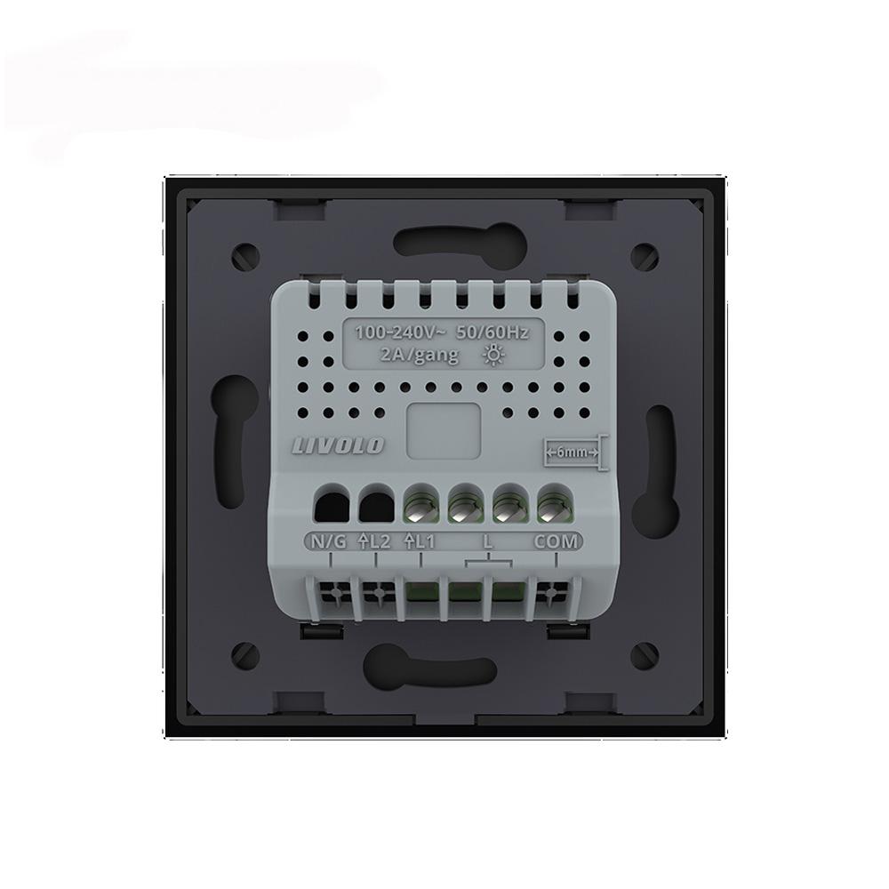 Livolo dimmbarer EC Wechsel-/Kreuzschalter mit Glasblende in SchwarzDies ist ein dimmbarer Livolo EC Wechselschalter, zum ein- und ausschalten einer Leuchte bzw. Leuchtengruppe, sowie dem Dimmen dieser. Zusätzlich verfügt er über eine Wechselschalt-Funktion, sodass die Leuchte von bis zu vier Schaltern aus ein- und ausgeschaltet werden kann. Die Livolo Touch-Wechselschalter können gleichzeitig auch als Kreuzschalter verwendet werden. Der Anschluss aller korrespondierender Kabel der weiteren Touch-Wechselschalter erfolgt zusammen im COM-Anschluss des Schalters, der als Kreuzschalter verwendet wird. Bitte beachten Sie, dass dieser Wechseldimmer nur in Verbindung mit dem Livolo Touch-Wechselschalter VL-C701S nutzbar ist. Pro Wechselschaltung können Sie nur einen Wechseldimmer nutzen. Da im Anschluss eine Synchronisation ( YouTube-Video ) erfolgen muss, können innerhalb einer Wechselschaltung nur Livolo Touch-Wechselschalter verwendet werden. Die Synchronisationsanleitung finden Sie in der Bedienungsanleitung. Zusätzlich kann dieser Schalter in Verbindung mit dem Livolo EC Gateway auch per App gesteuert werden. Durch die Glasblende wird dieser Schalter mit moderner Sensortechnik zu einem echten Hingucker. Einfache und schnelle Montage, sowohl vertikal als auch horizontal . Kurzes Berühren des Touchfelds schaltet die Leuchte ein oder aus. Ein längeres Gedrückt halten des Touchfelds dimmt das Licht hoch oder runter. Unsere Touch- Lichtschalter können mit allen Arten von Lampen verwendet werden , einschließlich Glühlampen, Halogenlampen & Energiesparlampen. Ausnahme : LED-Strips. Bei unseren LED Deckenspots benötigen Sie keinen Widerstandsadapter! Die LED Deckenspots sind kompatibel mit allen unseren Livolo Schaltern. In unserem Shop finden Sie auch Spreizkrallen (LG-01) im 2er Pack, für Unterputzdosen ohne Verschraubungsmöglichkeit. Geeignet für Hohlwände und ältere Häuser (Baujahr vor 1970). Bei Verwendung von Spreizkrallen sind 68 mm große Unterputzdosen besser geeignet. Die Module werden mittels der beiliegenden Metallrahmen durch Schrauben an den Unterputzdosen befestigt. Der Austausch erfolgt wie bei anderen Wipp-Schalter-Herstellern. Ersetzen Sie einfach Ihre alten Wipp-Schalter durch ein neues, langlebiges Design. Die Verkabelung bleibt die gleiche. Die Lichtschalter- und Steckdosen-Module sind für Unterputzdosen mit 60-68 mm Durchmesser geeignet . Der Lochabstand für Mehrfach-Blenden beträgt 71 mm. Bei uns erhalten Sie die komplette Livolo Bandbreite; von einem einfachen Wipp-Lichtschalter bis zum smarthome-fähigen Touch-Rollladenschalter. Fragen? Rufen Sie uns an oder senden Sie uns eine E-Mail. Wir beraten Sie gerne! Technische Daten: Spannung: 100-240V ~ 50/60Hz Maximale Strom: nicht mehr als 2A Maximale Leistung: 440W/220V Minimale Leistung: 10W (Dimmbare Leuchten) Langlebigkeit: 100.000 Abmessungen:80 x 80 x 34 mm Lieferumfang: Im Lieferumfang enthalten ist: - 1 x Livolo Touch-Schalter-Modul, gemäß Bestellung - 1 x Livolo Glasblende, gemäß Bestellung - Bedienungsanleitung Info zur Installation: der Anschluss erfolgt OHNE Strom und Glasblende, nach der Montage können Sie die Glasblende aufsetzten und den Strom wieder einschalten. Lassen Sie dem Touch Schalter, vor dem betätigen 3 Minuten ruhen. Nach Ablauf der Zeit kann der Lichtschalter betätigt werden. Sollten Sie diese Hinweise nicht befolgen, kann es vorkommen dass der Lichtschalter nicht reagiert.